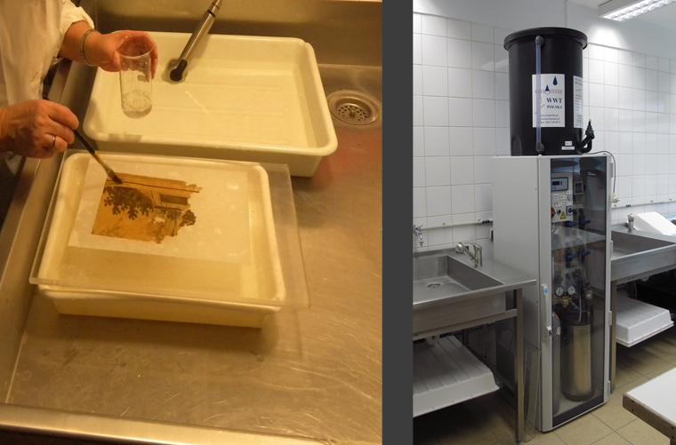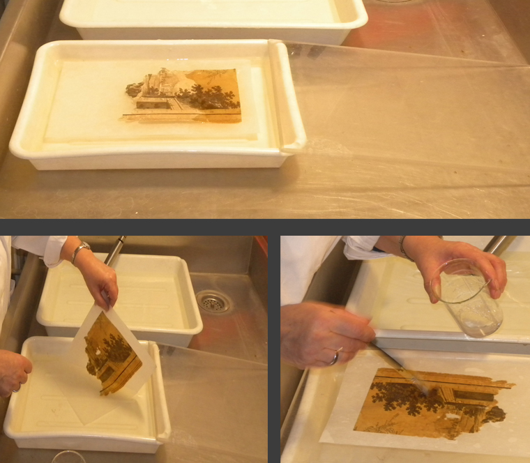 Po oczyszczeniu mapy i płótna na sucho przechodzimy do czyszczenia na mokro, a więc do kąpieli wodnej.