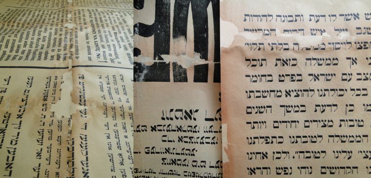 W tej chwili w Pracowni Odkwaszania i Konserwacji Arkuszy ZKMZB pracujemy nad 94 afiszami żydowskimi z lat 1929-1939. Pochodzą one z gmin żydowskich Drohobycza, Lwowa i Borysławia [DŻS IK 2f]. Są to wielkoformatowe ogłoszenia, odezwy, obwieszenia itp drukowane w dwóch, czasem trzech językach na bardzo cienkim papierze. Podłoże jest już bardzo zdegradowane, brązowe i kruche. Na krawędziach i w miejscach złożenie papier łatwo łamie się , co powoduje powstawanie licznych ubytków. Po odkwaszeniu w systemie Neschen C900 – braki podłoża uzupełniane są masą papierniczą. Niestety część afiszy będzie musiała być dodatkowo zalaminowana od strony odwrocia [niezadrukowanej], ponieważ papier w dalszym ciągu jest bardzo delikatny.