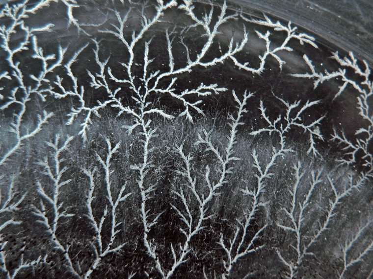 Za oknami mróz, a na szalkach struktury przypominające lód na zmrożonych szybach.