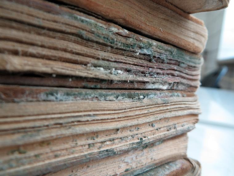 Obiekty poddane zostały dezynfekcji tlenkiem etylenu w komorze fumigacyjnej. Mimo iż grzybnia (Penicillium sp.) jest widoczna gołym okiem, badania mikrobiologiczne potwierdziły skuteczność przeprowadzonego procesu. Zbiory w takim stanie należy niezwłocznie oczyścić mechanicznie. Podczas prac niezbędne jest korzystanie z rękawiczek, okularów ochronnych oraz odpowiednich maseczek chroniących drogi oddechowe.